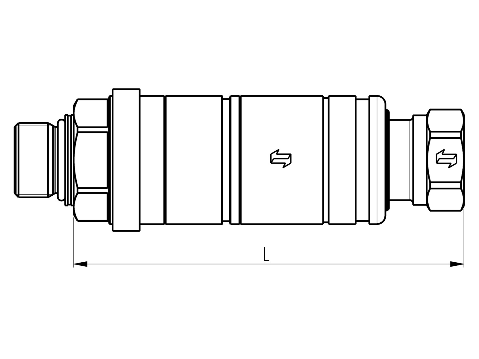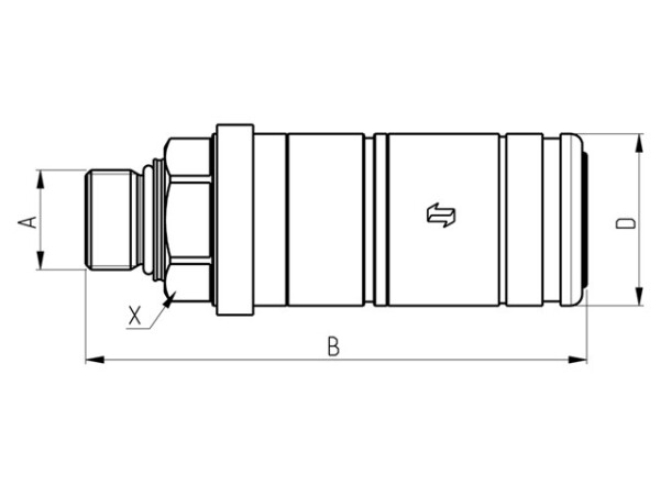 Push-pull-naaraspikaliitin ulkokierteellä.Liitettävyys: vain urosliitin paineen alaisena.