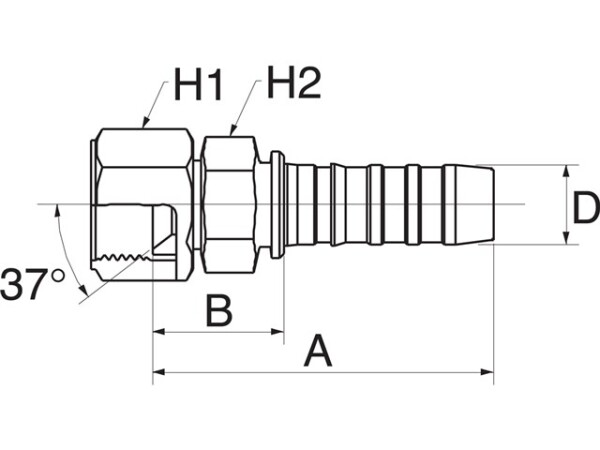 Liitäntä: Sisäkierre JIC 37° kartio.Tiivistys: Metalli vastaan metalli.