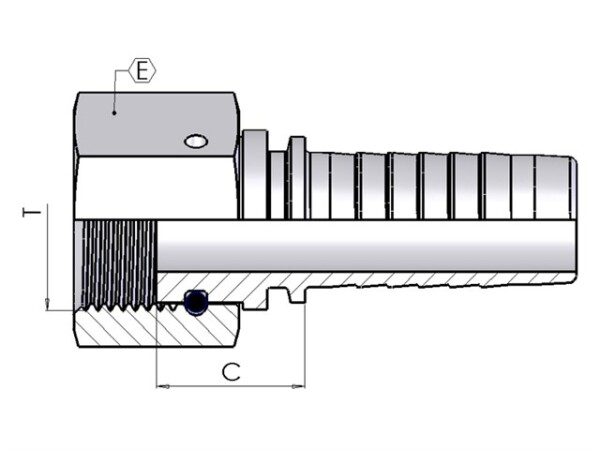 Puristettava tasapohjainen letkuliitin BSP sisäkierteellä (HIAB).Liitäntä: BSP sisäkierre mutterissa, tasapohjainen.