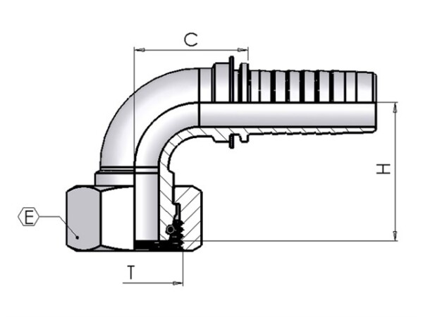 MM sisäkierteinen letkuliitin 24° tiivistyskartiolla ja O-renkaalla.Liitettävyys: Liitetään 24° tartuntaan (DIN2353).