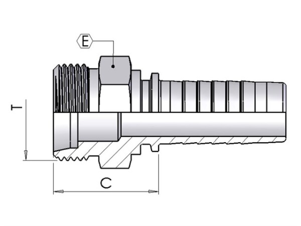 Puristettava letkuliitin MM ulkokierteellä (tartunta CEL).Liitäntä: MM ulkokierre 24° kartiopinnalla (DIN2353).
